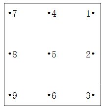1、测试点位于盐雾试验机的工作空间内,玻璃漏斗的上表面工作室底面的高度为工作室高度的1/3 2、工作室的容积不大于2m3时,测试点为5个,漏斗中心与内壁的距离为150mm。测试点的布放位置如下图。中心位置有喷雾塔时,中心点可离喷雾塔适当距离。  3、工作室的容积大于2m3到10m3时,测试点为9个,漏斗中心与内壁的距离为170mm。测试点的布放位置如下图.中心位置有喷雾塔时,中心点可离喷雾塔适当距离。