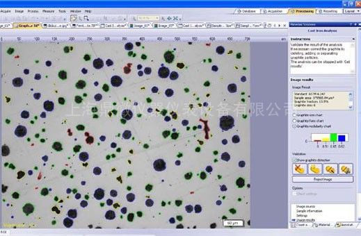 图像分析软件提供详细的石墨分析结果