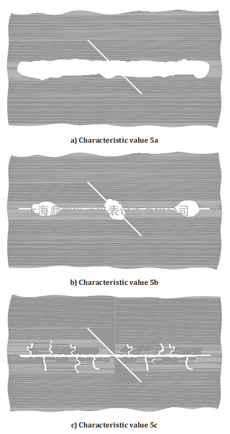 9评价 9.1概述 当涂层松动或剥落时,无论哪层涂层承受损伤,都可以识别出损伤。 9.2评价与图片比较 目视评估,将样本与图片进行比较。 在可视化评估过程中,通过与 图4至图9中的插图。一个介于1到5个结果之间的特征值,取决于度数 损坏的。无损伤对应于特征值0。除了评估,如果 适用,从主分离层或各胶片分离的属性 应注明。 目视评估的结果根据所用方法来表示,例如: -方法A:特征值A; -方法B:特征值B; -方法C:特征值C。 另外,通过测量剥落面积(大宽度,以毫米为单位或面积为正方形)。 毫米),可以评估整体损伤。总损伤是通过将所有损伤相加来计算的 试样的面积。即使是小的剥落面积也要进行测量和计算,所有面积加上 整体损害。